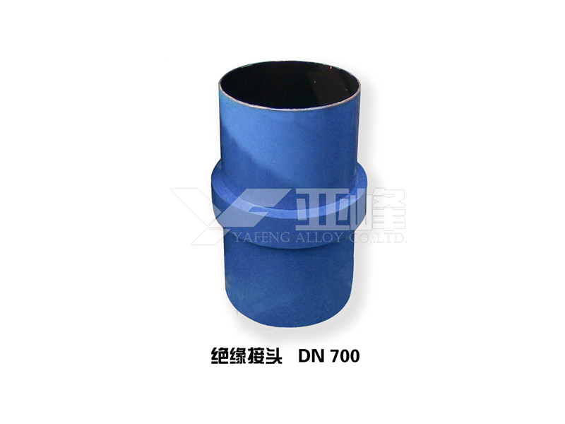 整體式絕緣接頭由下面各零件組成:上、下管、套筒、絕緣件、密封件、絕緣涂層。在絕緣接頭的上、下管對接端面間,夾有絕緣件和密封件,形成具有絕緣性能的雙密封結構。套筒采用坡口焊接或與上導管直接焊接兩種形式,將絕緣件和上、下管牢固封裹在里 面,形成“密封容器”,從而既保證了良好的絕緣效果,又大大提高了絕緣結構的承壓能力。